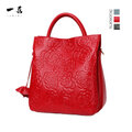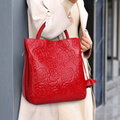 トートバッグ 本革レザー ショルダー 3way 大容量 おしゃれ 圧花 丈夫 通勤 レッド MD29-2