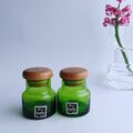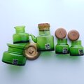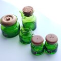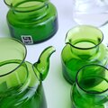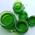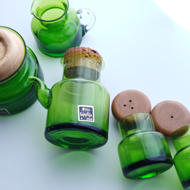 日本製 グリーンの薄はりガラス キッチンウェア 調味料入れ 5点セット 昭和レトロ   花瓶 インテリア オブジェ