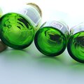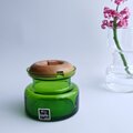小さな花瓶として、季節の草花を。グリーンのガラスはお花の引き立て役。