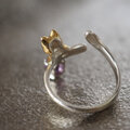 寄り添う茶白猫とアメシストのシルバーリングのコピー