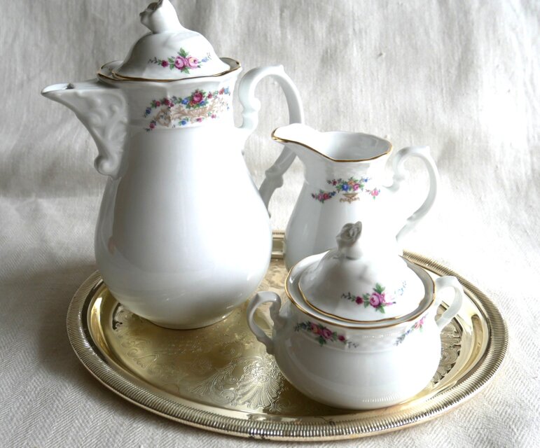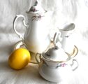 【Thun】 トゥーン(旧チェコスロバキア製)バラの柄ティーポット、クリーマー、シュガーポット3点セット