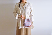 斜め掛けも肩掛けにもできるポシェットは上質な生地の既製品にはない雰囲気にコーディネートしたときのトレンド感も意識したのシルエットもポイントです。