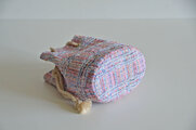 アイスブルーやキラキラ光るベリーピンクの糸をメインにさまざまな糸が織り込まれ、ツイードの魅力をグッと引き出しています。