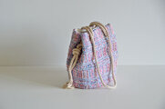 『思わず出かけたくなる心踊るベリーピンクのファンシーツイードポシェットマリンバッグ』