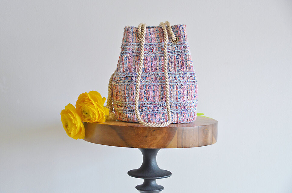 クリーンで品のあるツイードポシェットマリンバッグ。カジュアルな装いを瞬時にクラスアップしてくれますよ♪
