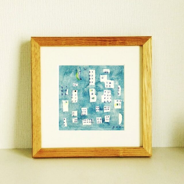 インテリア インテリアアート 北欧 北欧インテリア ナチュラルインテリア イラスト イラストレーター アナログイラスト オリジナル額縁 無垢材 額縁 風景画 心象風景 絵画 一点物 リラックス ドローイング 水彩ドローイング 青 BLUE