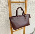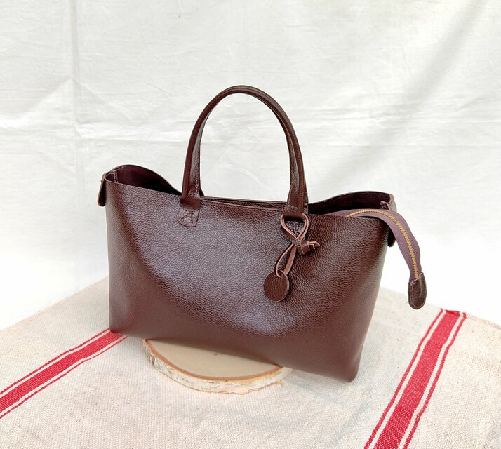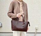 【姫路レザー】ジャーニートートバッグ(メンズ/レディース/シンプル/ファスナー/軽い/通勤/旅行/デイリー)ダークブラウン