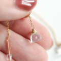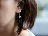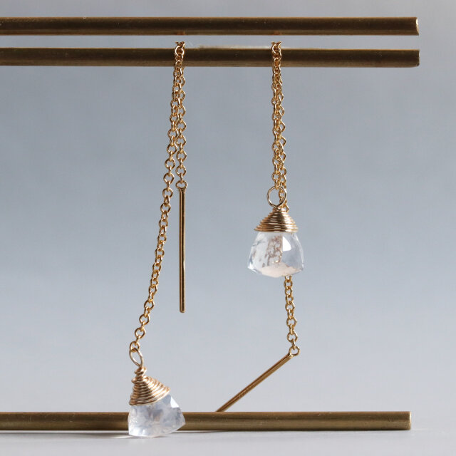 上品な透明感|ミルキークォーツのチェーンピアス|揺れる|天然石ピアス|14kgf|金属アレルギー対応|大人
