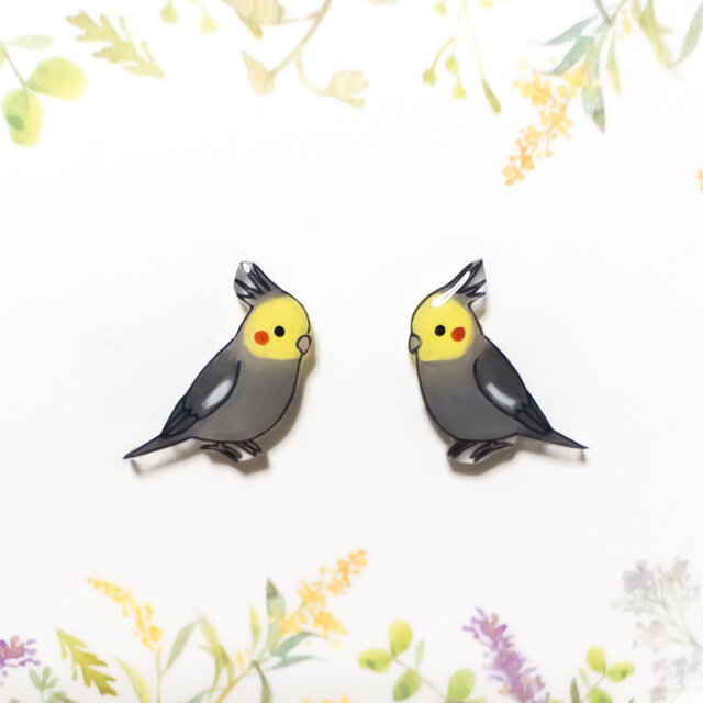 ~小さなピアスシリーズ~オカメインコ(A)ピアス/ノンホールピアス(樹脂イヤリング)
