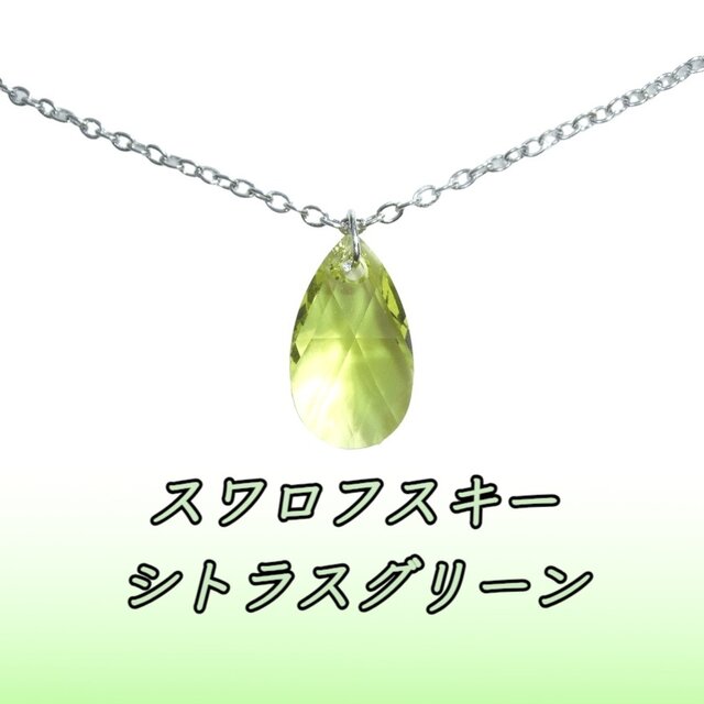透明度 発色 輝きともに抜群 シトラスグリーン スワロフスキーティアドロップネックレス