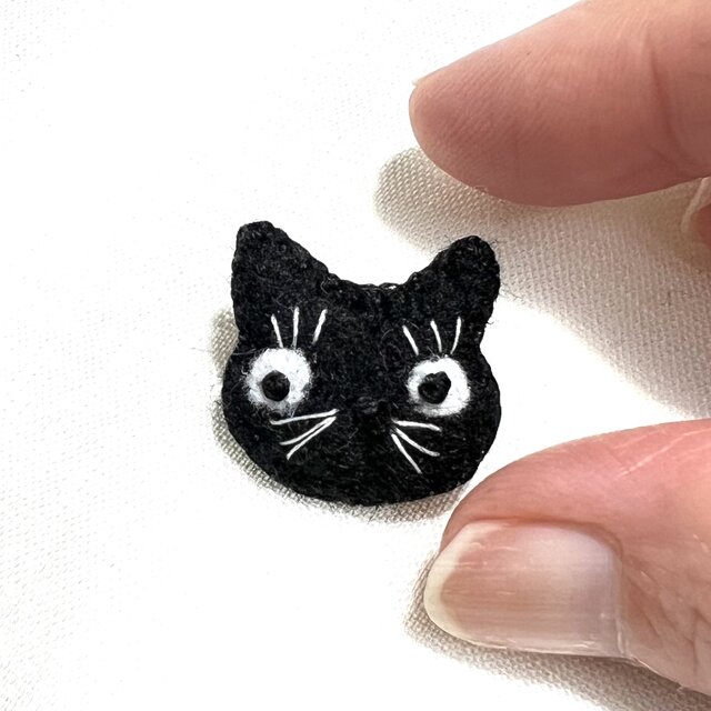 【極小2cm】フェルトの猫ブローチ⑧ 黒猫 ミニチュア|大人のための、小さなお守りアクセサリー|DoudouMimi