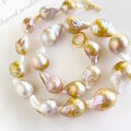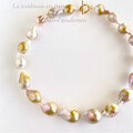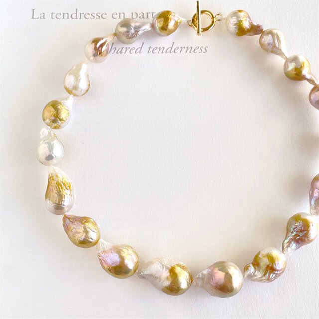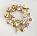 珍しいゴールド色がのったオイスターパールを、滑らかなグラデーションに組んだ