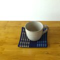 藍染めの糸を使い沖縄の経ロートン織(たて糸が浮いた織り方)で作ったポットマット。