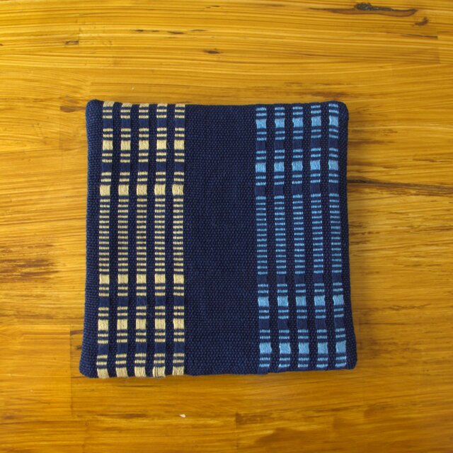手織り・藍染めポットマット 経ロートン織り B
