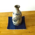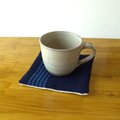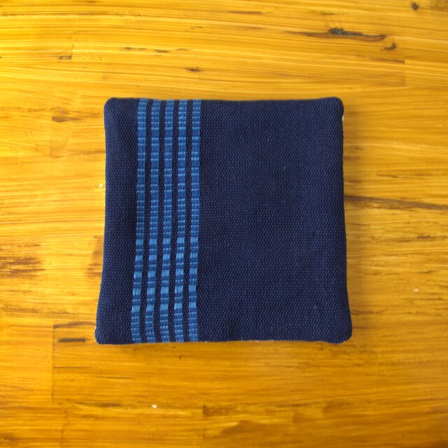 藍染めの糸を使い沖縄の経ロートン織(たて糸が浮いた織り方)で作ったポットマット。