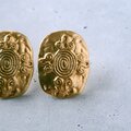 matte gold tone rectangle swirl cross ヴィンテージピアス