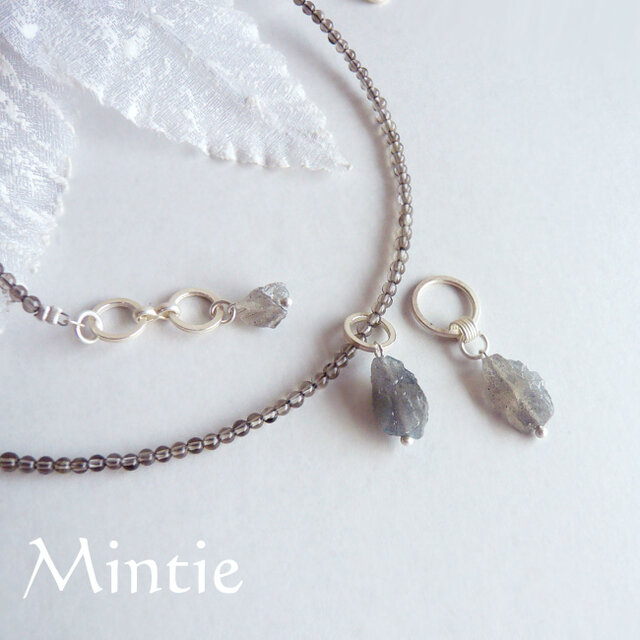 ラブラドライト&スモーキークォーツのダブルポイント2wayネックレス