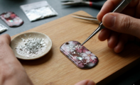 さらに、艶やかなUVレジンを幾重にも重ねることで、奥行きのある「和」の美しさを閉じ込めました。大量生産品にはない、手仕事ならではの温もりと高級感。