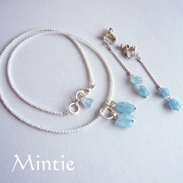 ●素材:天然石(アクアマリン・ホワイトコーラル)・真鍮 など
