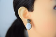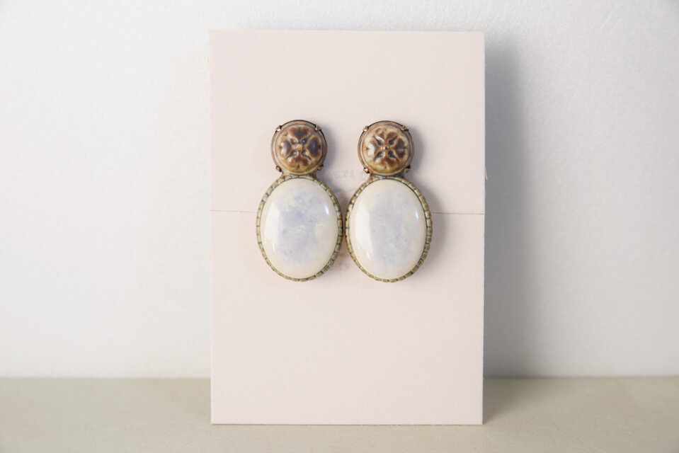 焼き物を石留めしたイヤリングです。