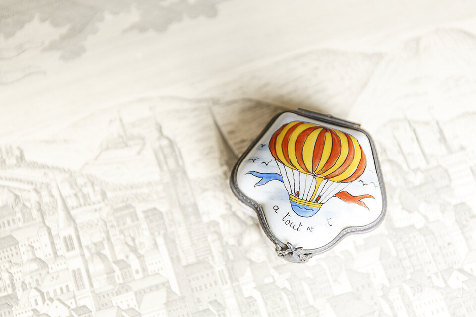 ヴィンテージのトリンケットボックス 気球モティーフ 小物入れ/ピルケース