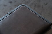 手に持った写真 同型別革。サイズと経年変化の参考にご覧ください