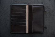 片側にはカード入れ6ヶ所とお札やレシートなどが入るサイドポケット、もう片側には被せ付きの小銭も入れられる大きなポケット(ホックなし)とサイドポケットがあります。