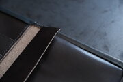 国産牛の牛革。タンニンで鞣し、濃い茶系色に染めています。使うほどに艶が増していきます。