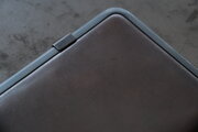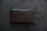 本体部分は立体成型ならではの革の角や凹凸の表情が、金具との組み合わせで際立ちます。カードケースと同じ構造ですが、こちらのロングウォレットは留め具が2箇所です。