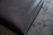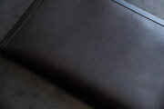 国産牛の牛革。タンニンで鞣し、濃い茶系色に染めています。使うほどに艶が増していきます。