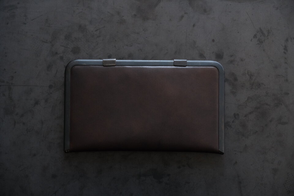 薄型でスマートな外観ながら、収納力はたっぷり。ただ、金具の形状上、中身を入れすぎると金具に負荷がかかる場合がありますので、入れすぎないようご注意ください。緩みが生じた場合は、修理等承りますのでご相談ください。