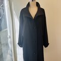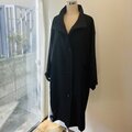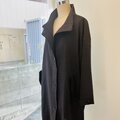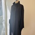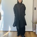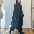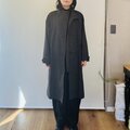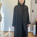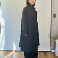素材は中肉厚のリネンウールを使用しています。薄手のアウターに適した張り感があります。お色はチャコール寄りのブラックで、真っ黒ではなく柔らかい黒といった印象です。
