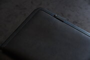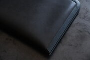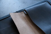 国産牛の牛革。タンニンで鞣し、黒色に染めています。使うほどに艶が増していきます。