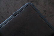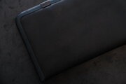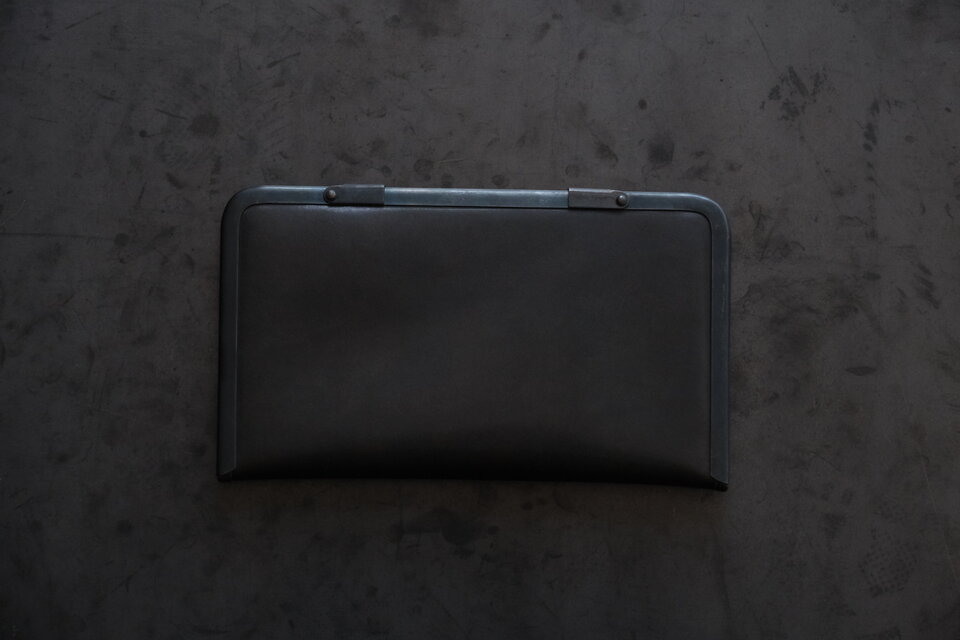 本体部分は立体成型ならではの革の角や凹凸の表情が、金具との組み合わせで際立ちます。カードケースと同じ構造ですが、こちらのロングウォレットは留め具が2箇所です。