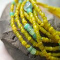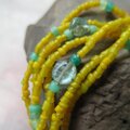黄色のインドシードビーズに、透明感のあるアパタイトと、小さなウランガラスのカカンバを合わせました。