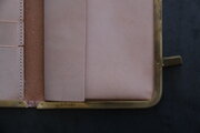 薄型でスマートな外観ながら、収納力はたっぷり。ただ、金具の形状上、中身を入れすぎると金具に負荷がかかる場合がありますので、入れすぎないようご注意ください。緩みが生じた場合は、修理等承りますのでご相談ください。
