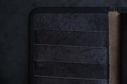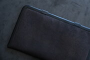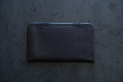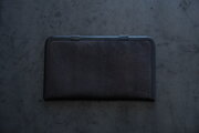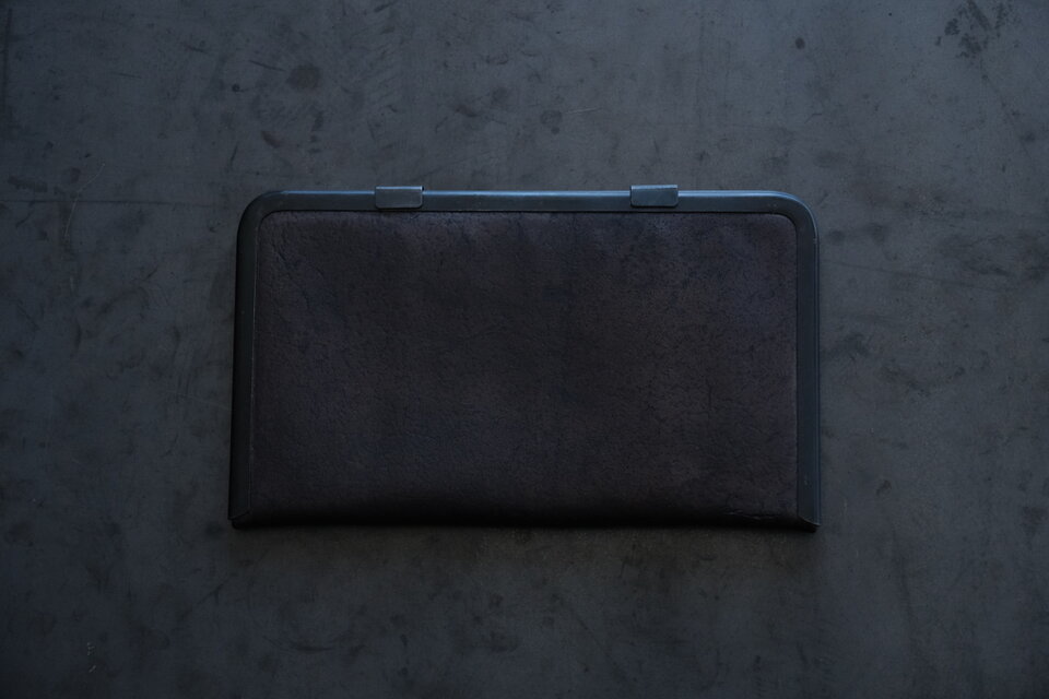 本体部分は立体成型ならではの革の角や凹凸の表情が、金具との組み合わせで際立ちます。カードケースと同じ構造ですが、こちらのロングウォレットは留め具が2箇所です。