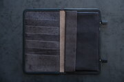 薄型でスマートな外観ながら、収納力はたっぷり。ただ、金具の形状上、中身を入れすぎると金具に負荷がかかる場合がありますので、入れすぎないようご注意ください。緩みが生じた場合は、修理等承りますのでご相談ください。