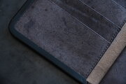 革は、高見澤さんは主に国内各地のジビエ(野生獣)の革を用いていますが、こちらはジビエ革ではなく馬革です。ホースバット(HORSE BUTT)は、馬の臀部(お尻)の革です。コードバンも同じ部位の革ですが、コードバンよりも上の層にある革です。繊維密度が高く、しなやかさもあると言われます。