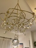ゴールド色のバラ型の鉄枠にゆらめくガラスパーツを取付けたシャンデリアサンキャッチャーです。