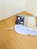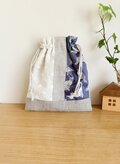 リネン生地とリバティタナローン生地を使った巾着袋です。
