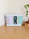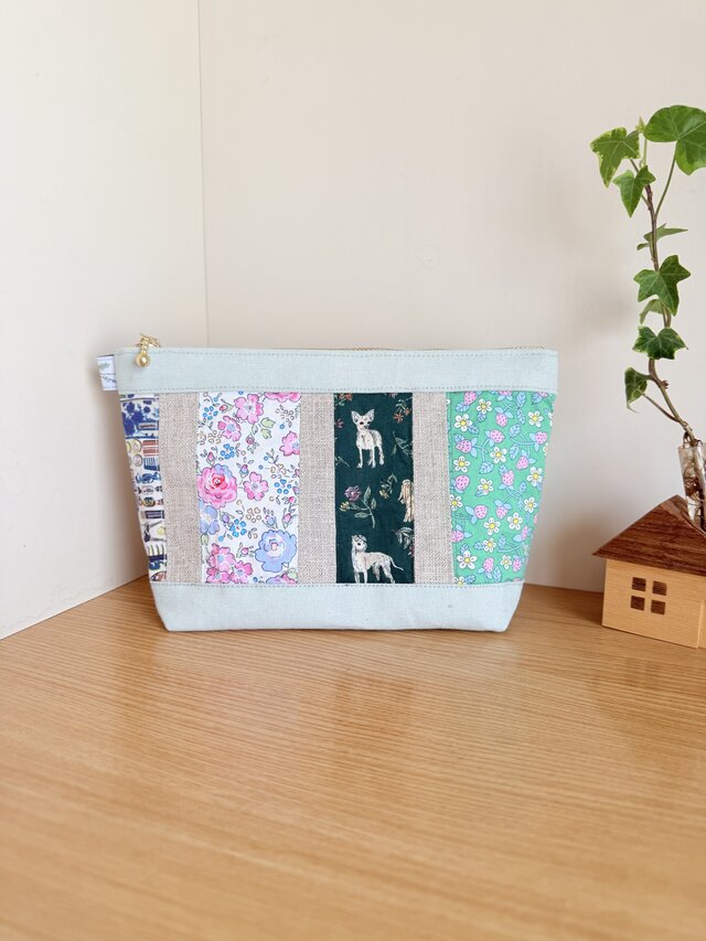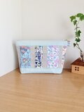 無地帆布生地とコットンの柄生地をあわせてポーチを作りました。