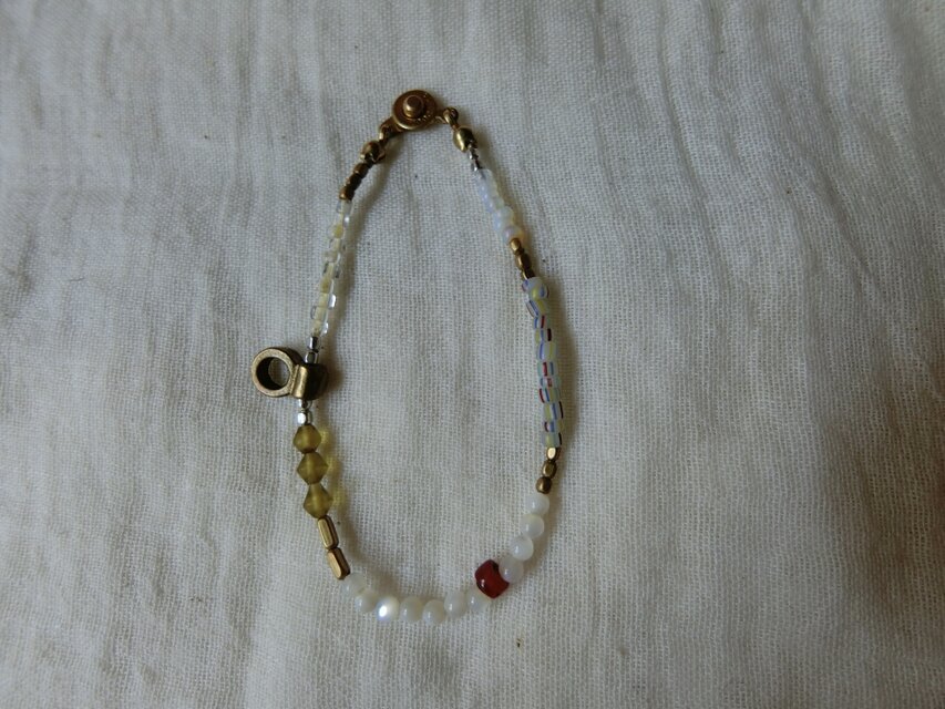 ビーズでパッチワークの様に少しづつ繋いだブレスです。