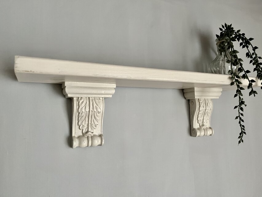 天然木をミルキーホワイトで塗装したアンティークなウォールシェルフ