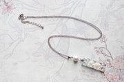 レジンアート 長方形のプレートとコットンパールのペンダント〈白と青のエレジー〉