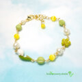 艶やかな淡水パールや、イエローのキャッツアイが印象的で、可愛らしさの中にも上品さを感じられるデザインに仕上げました。