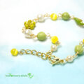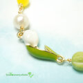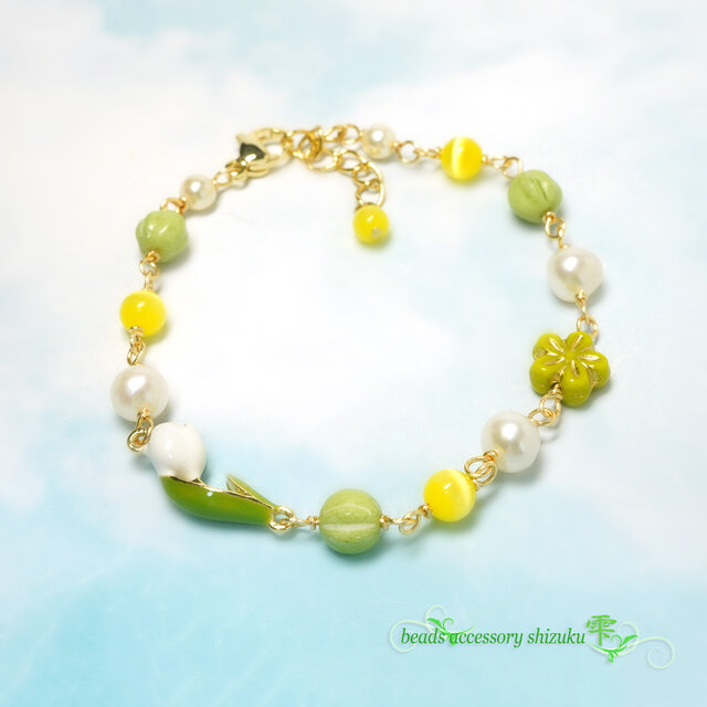 白、緑、黄色――春を思わせるやわらかな色合いのビーズたちが、やさしく季節感を演出。