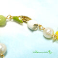 緑の中に咲く白いチューリップが可愛らしい、春らしいブレスレットです。