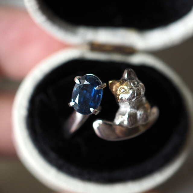 素材: シルバー925(石枠・猫モチーフ・リング)、一部ゴールドメッキ(猫モチーフ)