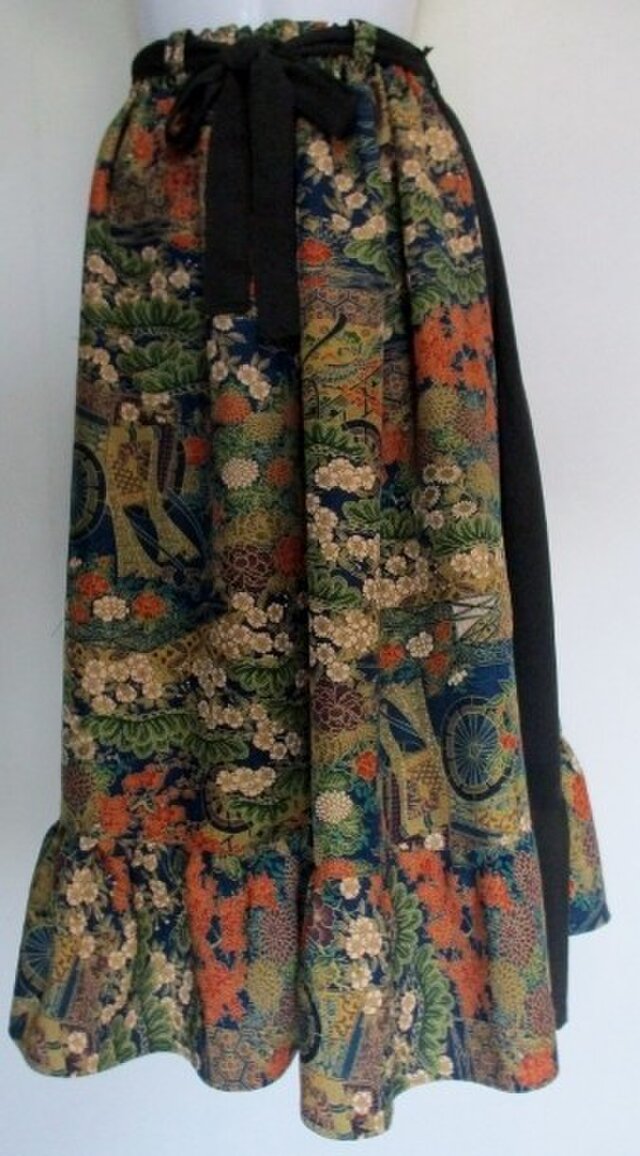 8698 花柄の着物で作ったスカート